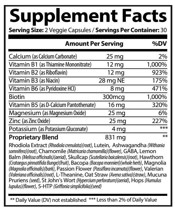 Stage 1 Stress Support Complex Anxiety. Stress. Calm. Serving size: 2 capsules Serving per container: 30 Stage 2 Sleep Support Complex Rest. Relaxation. Sleep Serving size: 2 capsules Serving per container: 30